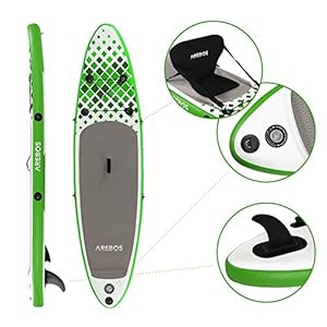 AREBOS-SUP-Board-Stand-up-Paddling-Surfboard-300-oder-320-cm-aufblasbar-Double-Layer-Alu-Paddel-Hochdruck-Pumpe-Transportrucksack-135-kg-Tragkraft-Blau-Gruen-oder-Orange